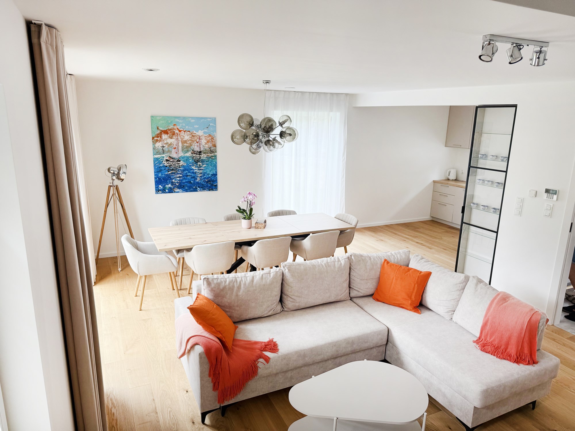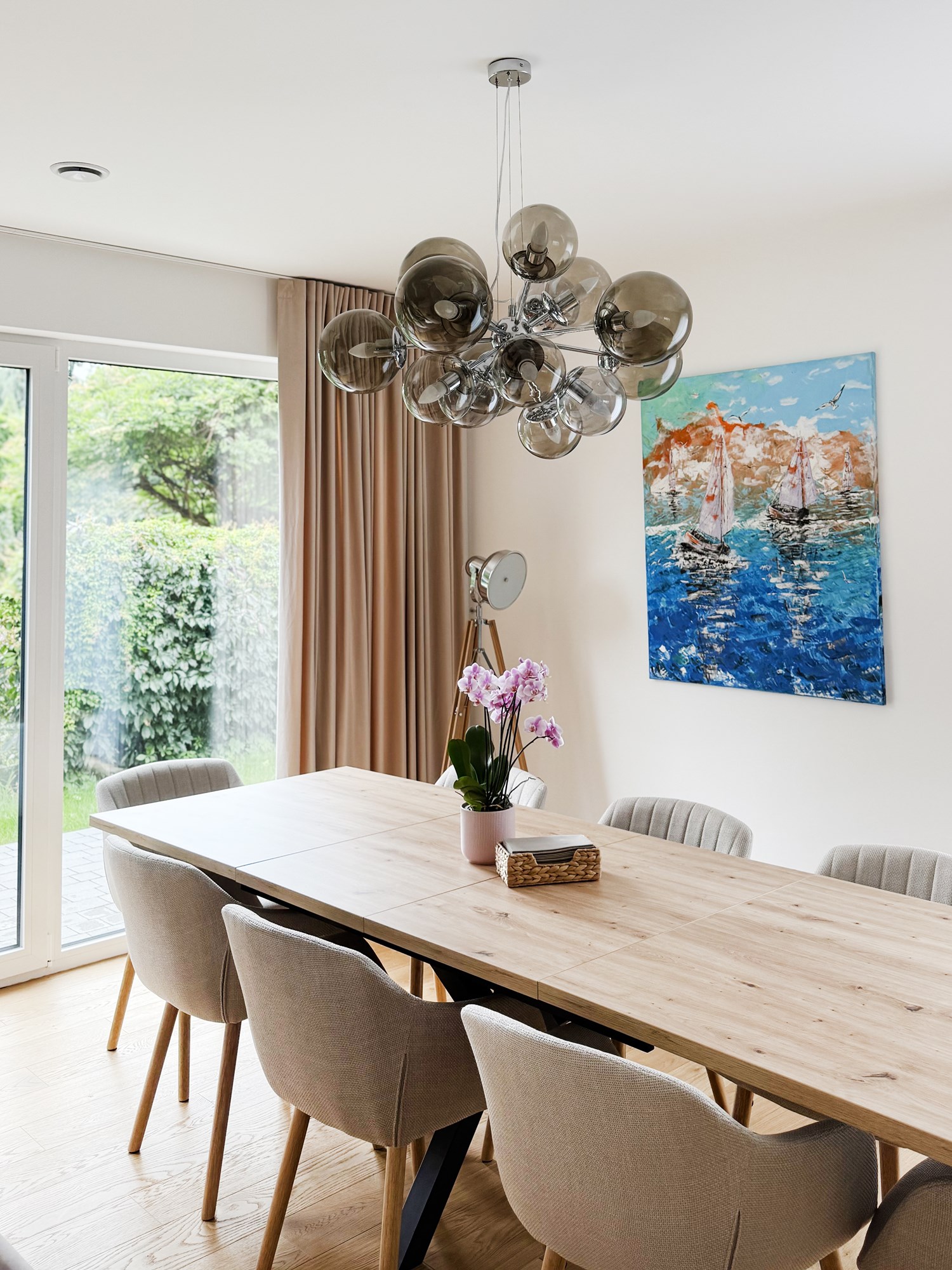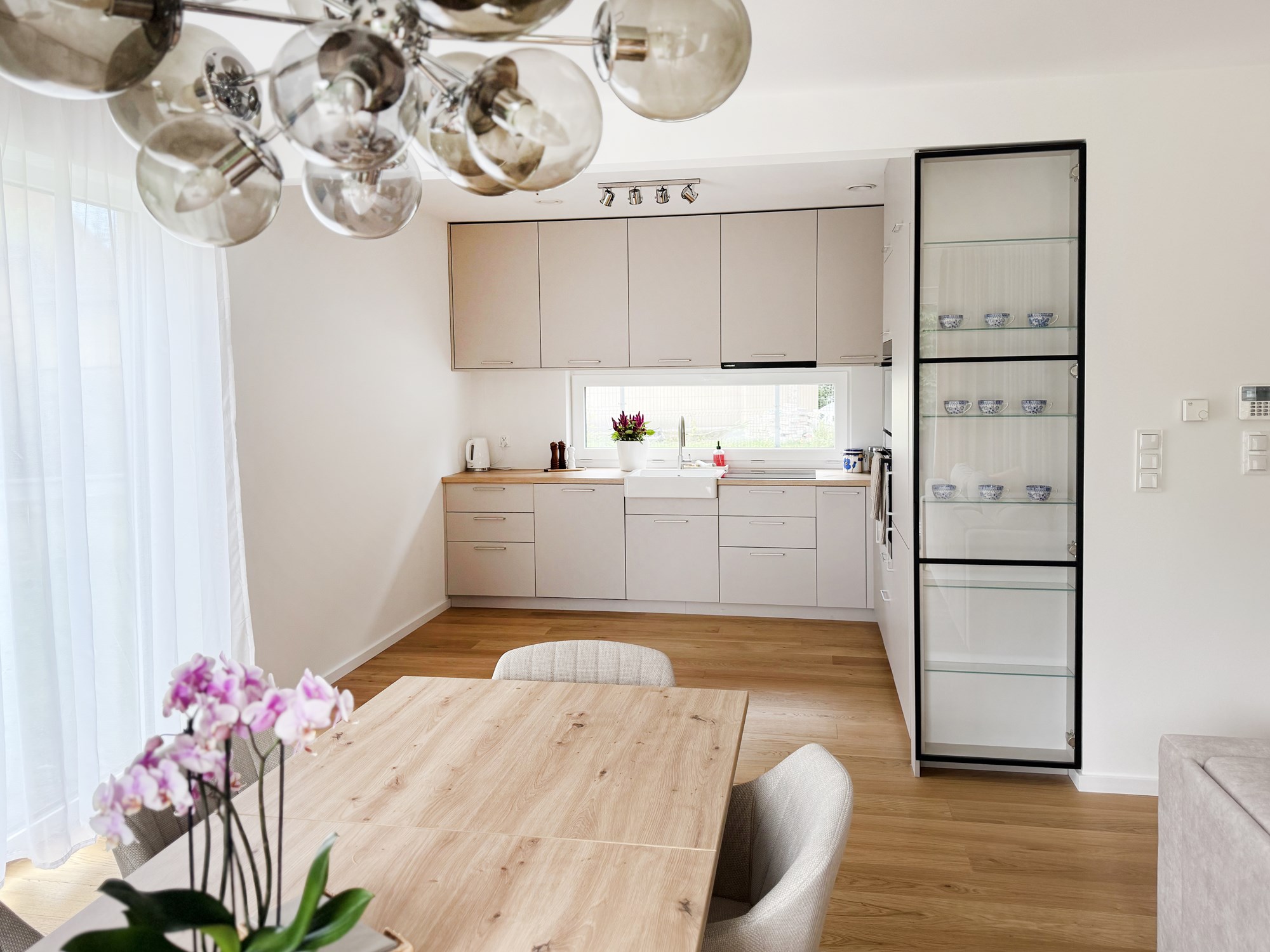 Dom pokazowy Model E jest w pełni wykończony i umeblowany, co pozwala przyszłym nabywcom na pełne doświadczenie komfortu i estetyki oferowanej przez ten projekt. Każdy detal został starannie dobrany, aby stworzyć spójną i przyjazną przestrzeń, w której każdy element ma swoje miejsce, a całość emanuje spokojem i równowagą.