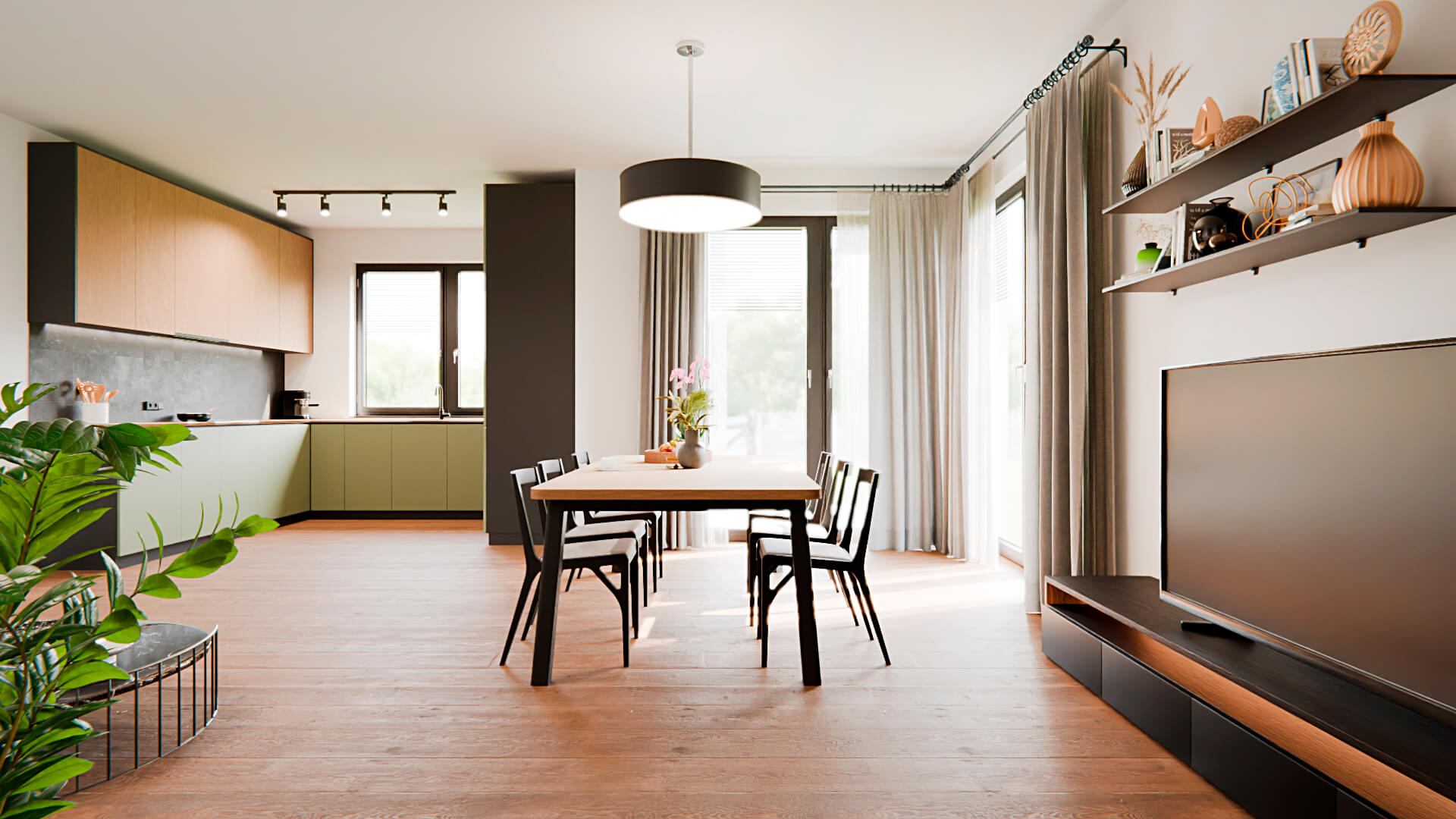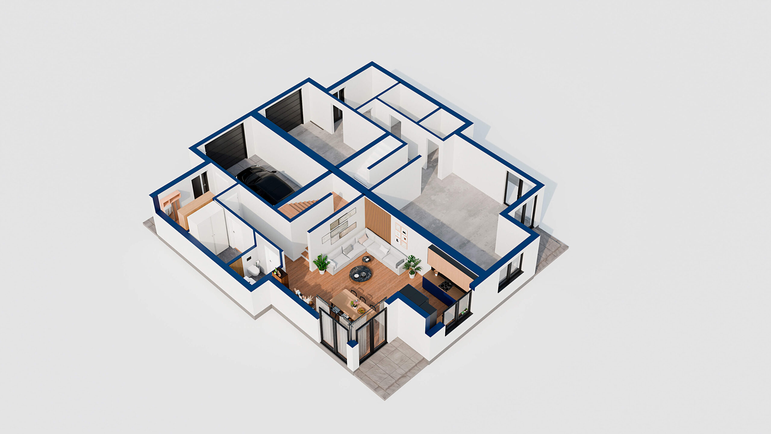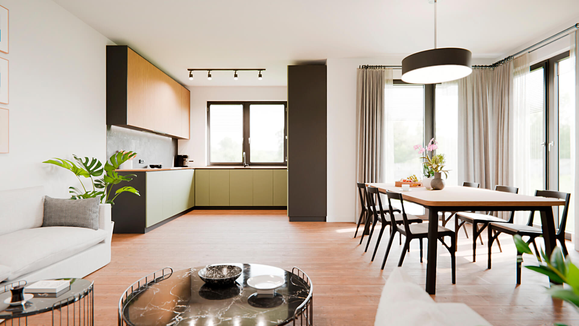 Cena obejmuje kompleksową realizację domu wraz z działką i pełnym zapleczem technicznym, dzięki czemu kupujesz gotowy, nowoczesny dom bez ukrytych kosztów.