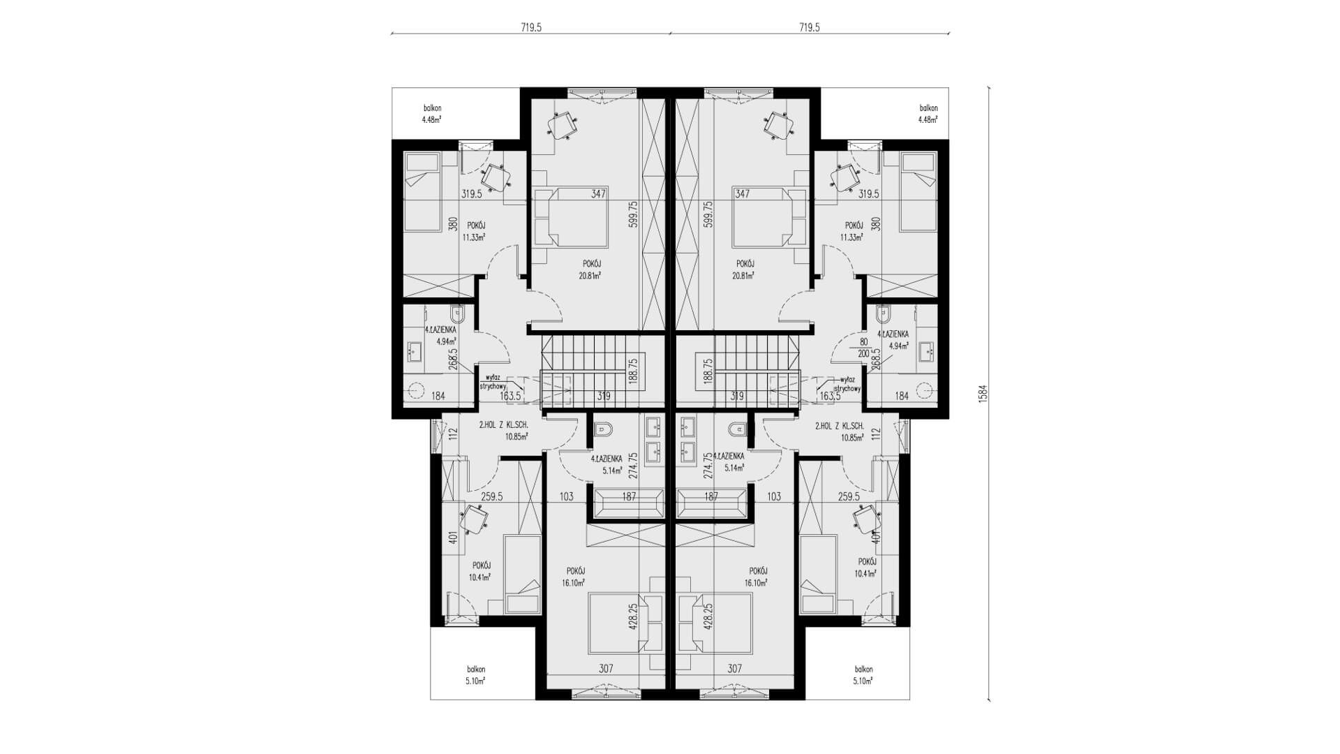 2 łazienki (4,94m² i 5,14m²)
