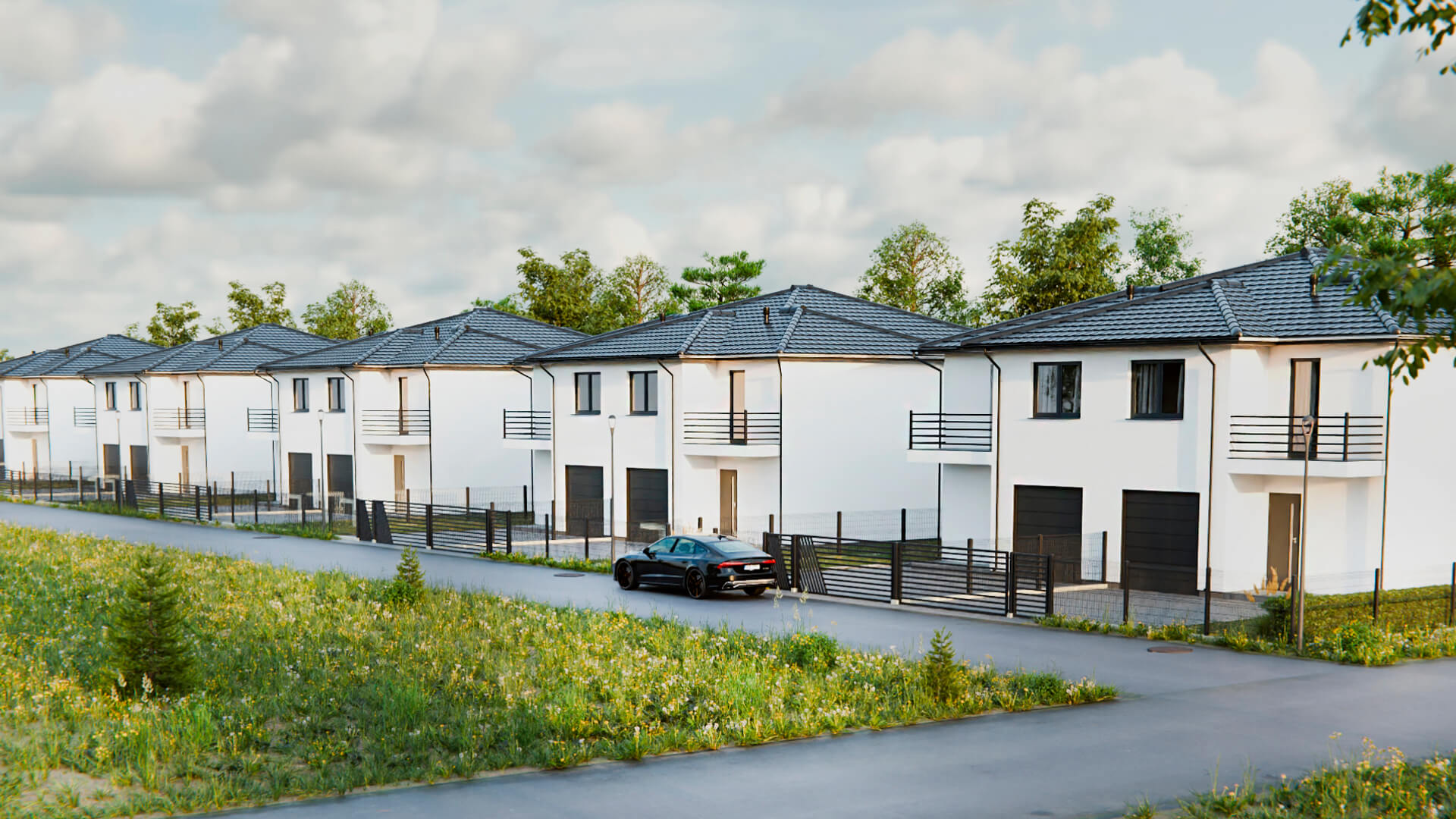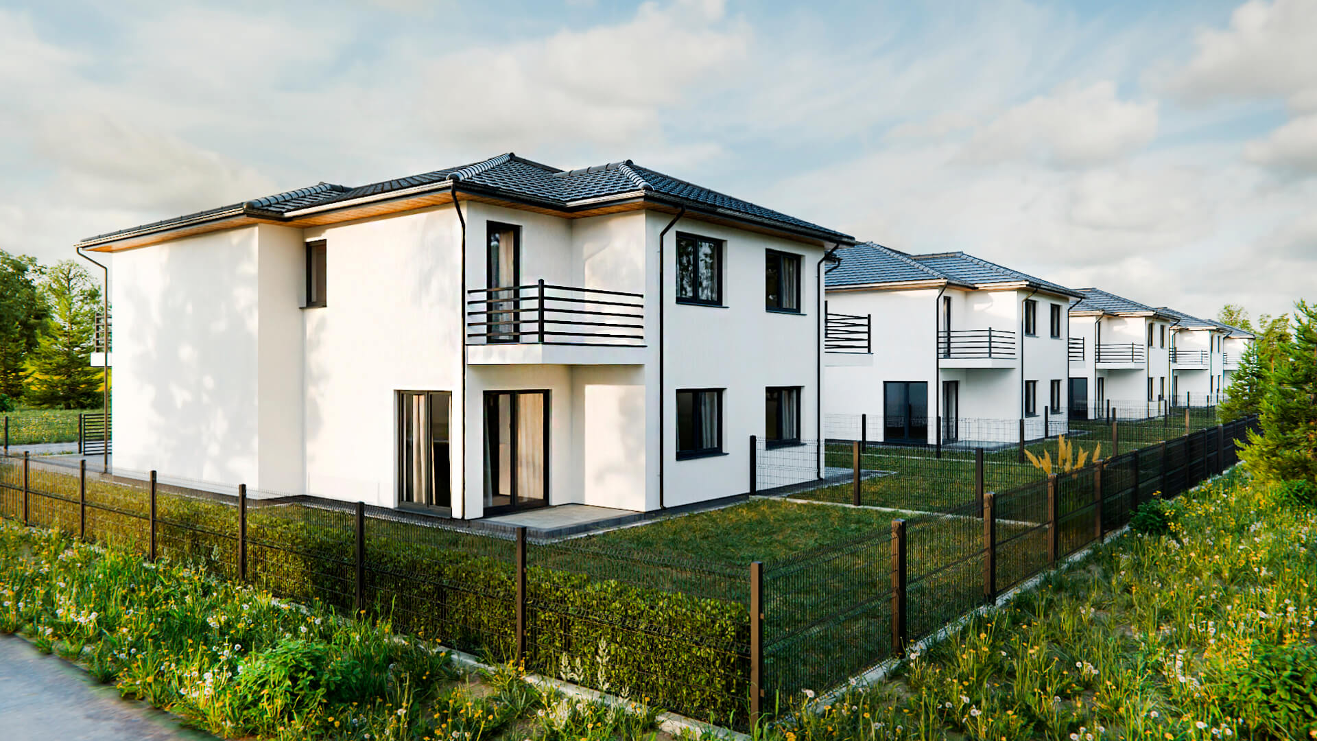 Osiedle obejmuje 10 domów w zabudowie bliźniaczej, zaprojektowanych z myślą o komforcie codziennego życia. Funkcjonalne układy pomieszczeń, prywatny ogród, balkony oraz nowoczesna architektura tworzą kameralną i przyjazną przestrzeń do zamieszkania.